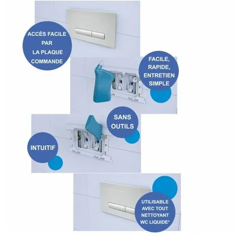 Larg. 400 x prof. 180 x haut. 1130 mm, réglable en hauteur avec pieds à freins facilitant la pose par une seule personne, pour cuvette standard ou cuvette PMR et rallongée