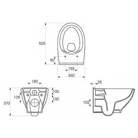 Cuvette suspendue sans bride semi carénée en porcelaine blanche