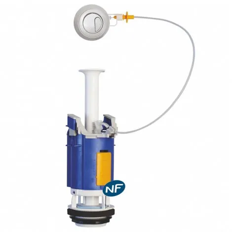 Mécanisme NF universel à poussoir à double débit, montage simple et rapide, s’adapte à la plupart des réservoirs de 300 à 480 mm de hauteur interne.