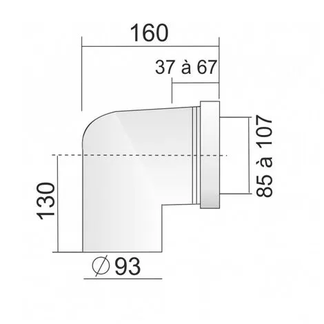 Pipe coudée courte mâle 93mm recoupable, permet si nécessaire de rapprocher le réservoir du mur. Joint démontable. Dimension : Ø100