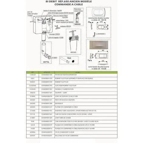 Pour réservoir de marque REGIPLAST référence 650, bi-débit, ancien modÚle avec commande à cùble.