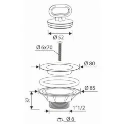 Bonde Pour évier Céramique Et Inox Sans Trop-plein – Diamètre Sortie 1″1/2 – Regiplast