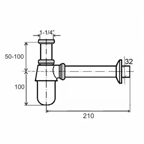 Siphon de lavabo chromé 1″1/4 sans bonde.