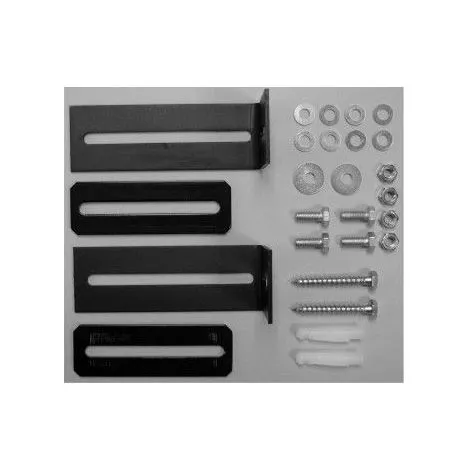 Fixations murales en métal pour bâti-support CESAME autoportant ou universel, réglables en profondeur jusqu ’à 250 mm avec chevilles, vis et visserie. Long mini: 145 mm, larg platine: 50 mm, hauteur équerre : 60 mm