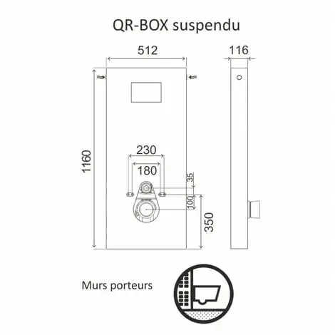 Ensemble sanitaire, larg. 512 x prof.116 x haut.1160 mm, pour cuvette suspendue ou au sol selon le modèle, composé d’ un bâti-support avec un réservoir anti-condensation 3/6 litres. Panneau en fibre de verre noir ou blanc. Pour tous types de mur, alimentation et évacuation dissimulées.