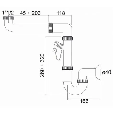 Siphon d’évier sans bonde sortie diamètre 40mm, avec raccordement machine à laver.
