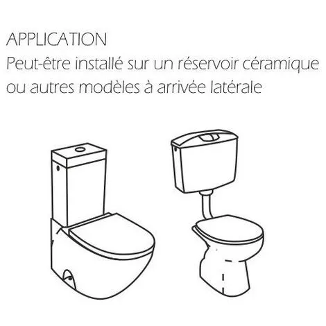 Robinet flotteur hydraulique NF classe 1, à remplissage différé. Réservoir pour liquide hygiénique et dose de produit hygiénique